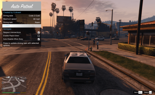 版本 1.1.1.0 496次下载 这个模组添加了从正常行驶到紧急情况的自动驾驶功能。作者专门为视频创作者开发了这个模组,这样他们就可以不用太过专注驾驶这个过程,而是更多的与观众进行互动。 需要 LSPDFRCN.API 安装 将压缩包内的所有内容解压至游戏目录 驾驶风格简述: 正常 - 遇到NPC、车辆、交通信号和停车标识停靠;使用闪光灯;避开空车; 危险 - 遇到交通信号和停车标识停靠;使用闪光灯;避开所有车辆、NPC和物品;超车 紧急 - 遇到车辆、NPC和交通信号停靠;使用闪光灯;忽略停车标识;避开所有车辆、NPC和物品;超车 CODE 2 - 遇到NPC停靠;遇到交通信号减速;忽略停车标识;避开所有车辆、NPC和物品;超车 CODE 2 (加州风格) - 遇到车辆和NPC停靠;忽略停车标识;避开所有车辆、NPC和物品;超车;偶尔忽略交通信号 CODE 3 - 避开所有车辆、NPC和物品;无视停车标识和交通信号;允许逆行驾驶了;超车